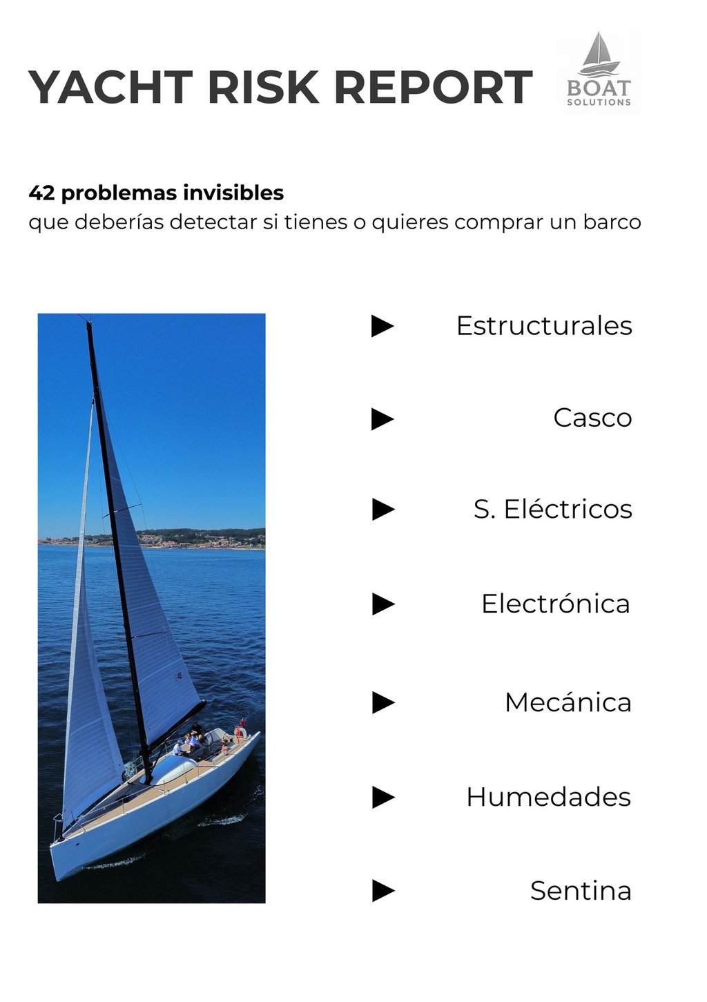 Haremos una inspección de tu barco y te diremos lo que necesita en todas sus áreas, con nuestro informe de riesgos para yates.